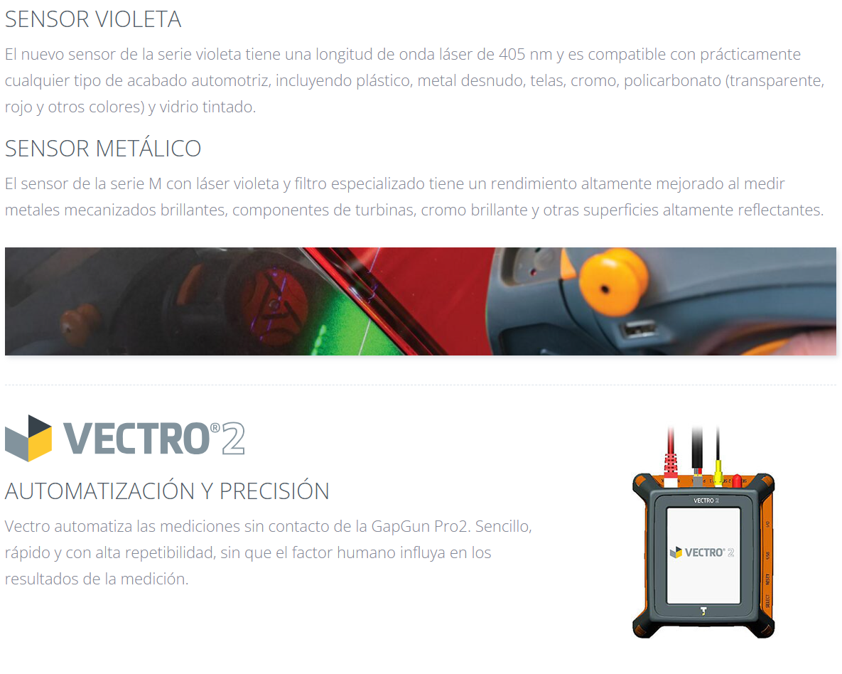 GapGun Pro2, Vectro 2 y Sensor Heads ofrecen medición precisa sin contacto, mejorando la eficiencia en control dimensional industrial.