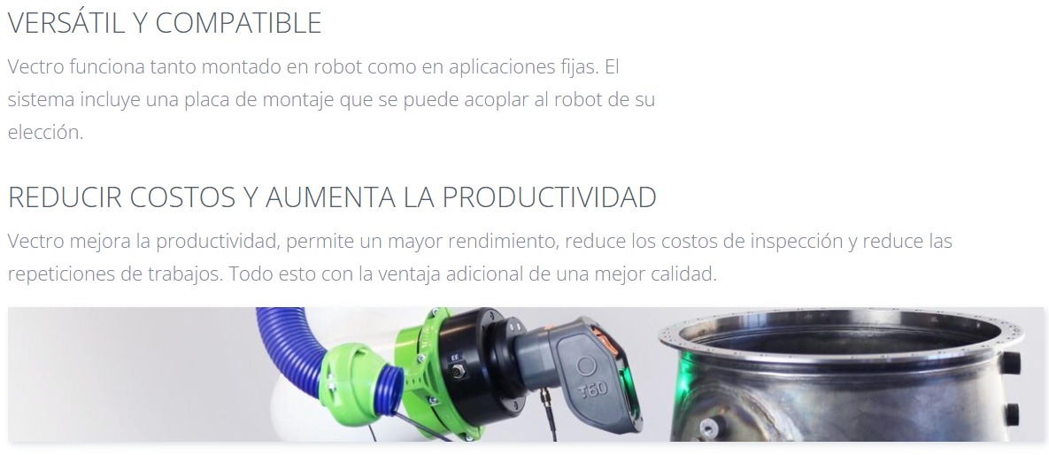 Vectro 2 es un sistema automatizado diseñado para integrarse fácilmente en líneas de producción. Con tecnología de sensores avanzados, ofrece mediciones precisas sin contacto, eliminando la necesidad de intervención humana y mejorando la eficiencia en la inspección. Su capacidad de trabajar en entornos industriales exigentes lo hace ideal para aplicaciones donde la velocidad y la precisión son cruciales, como en la manufactura automotriz y aeroespacial. Vectro 2 optimiza el proceso de inspección, reduciendo tiempos de ciclo y costos operativos.